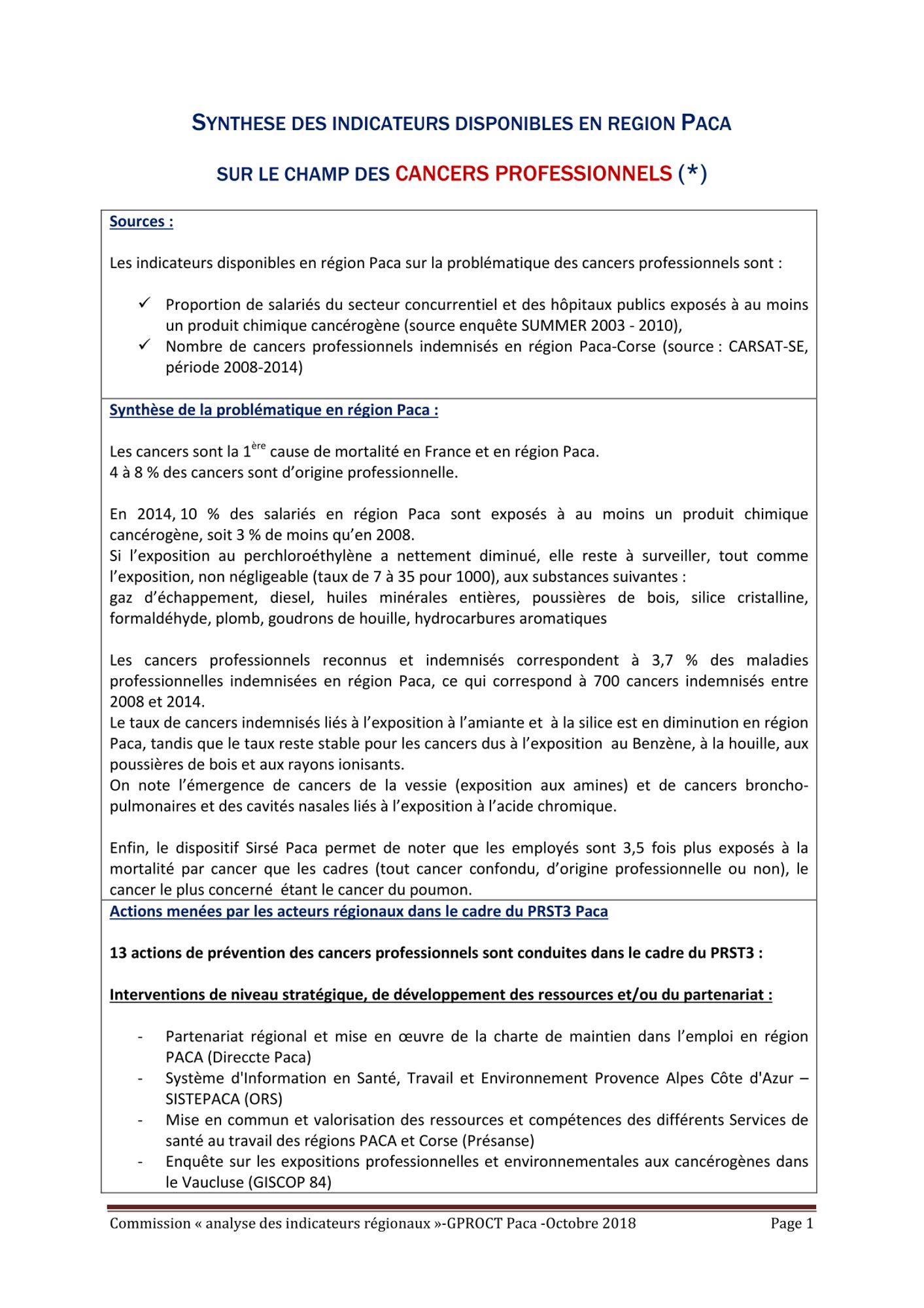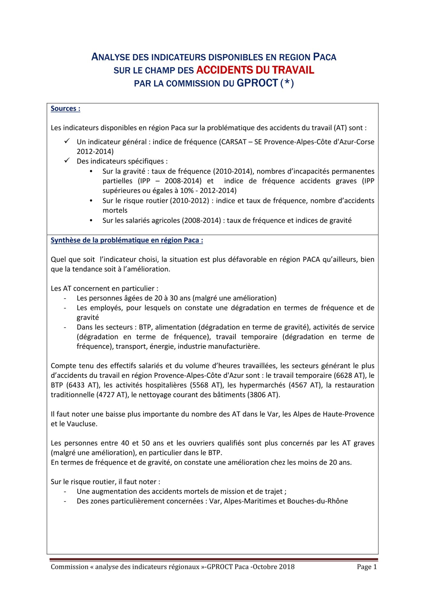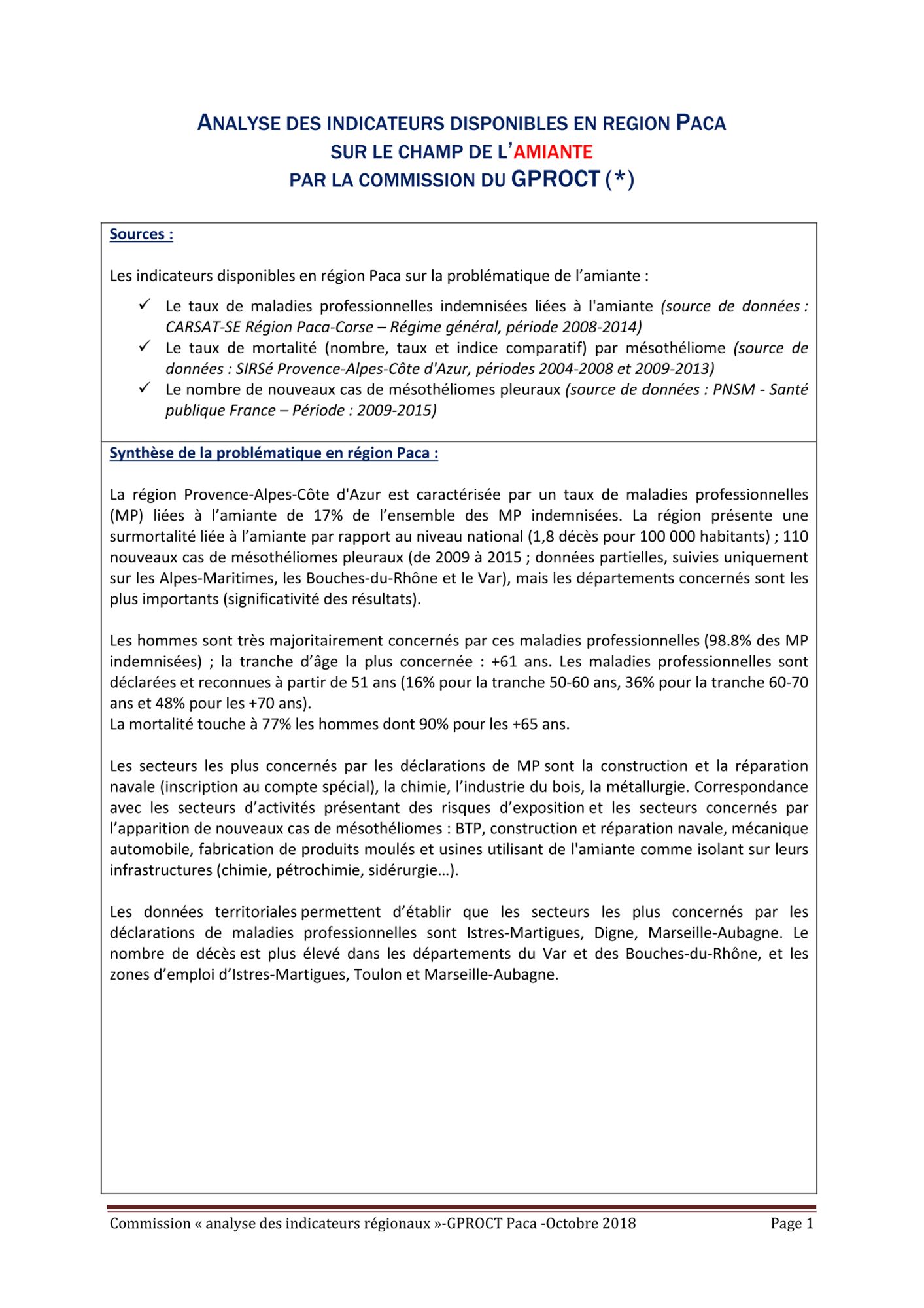 Fiches thématique issues des travaux de la commission technique du GPROCT "Analyse des indicateurs" de 2018.