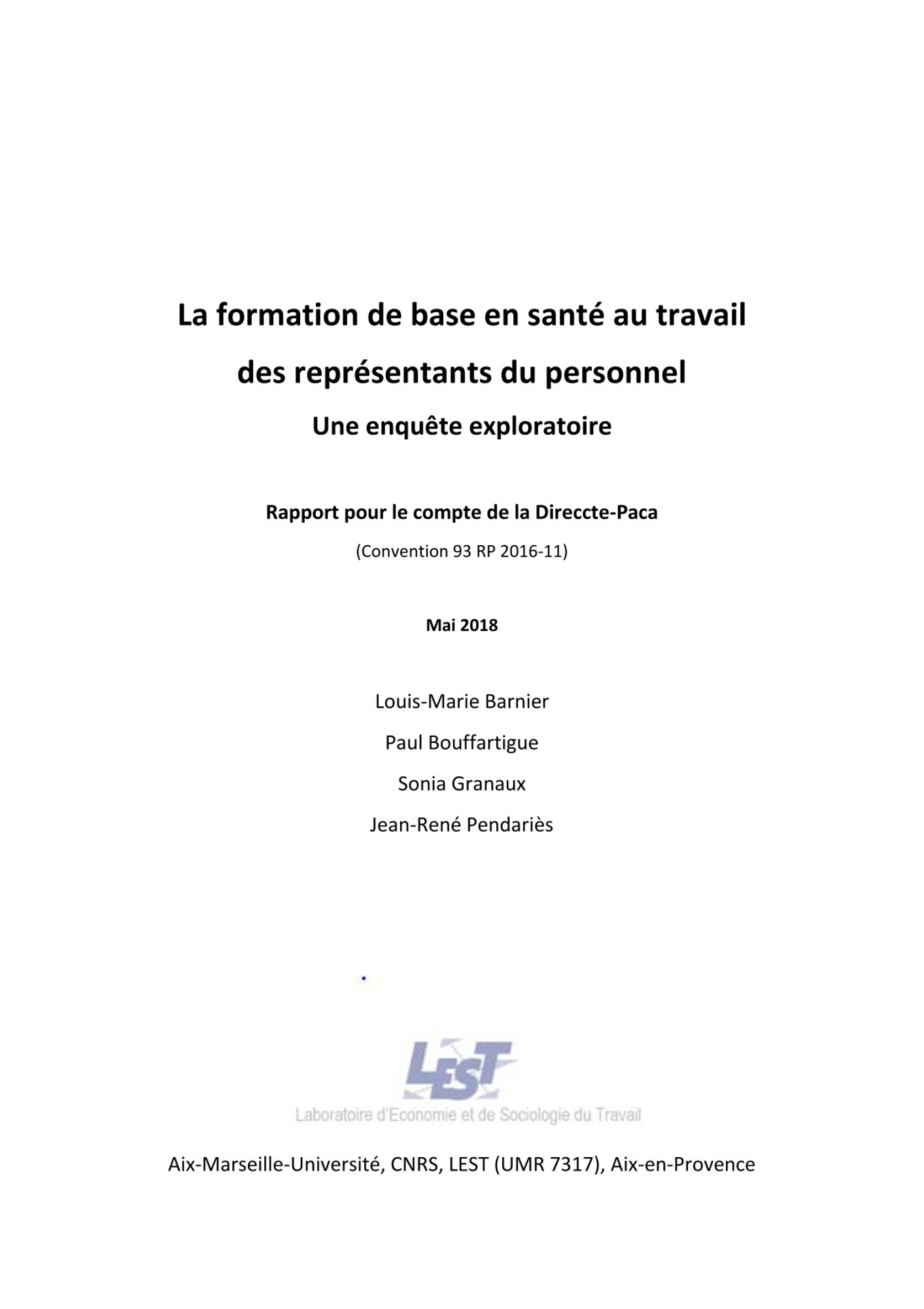 Enquête exploratoire réalisée par le LEST (Laboratoire d'Economie et de Sociologie du Travail) - Mai 2018