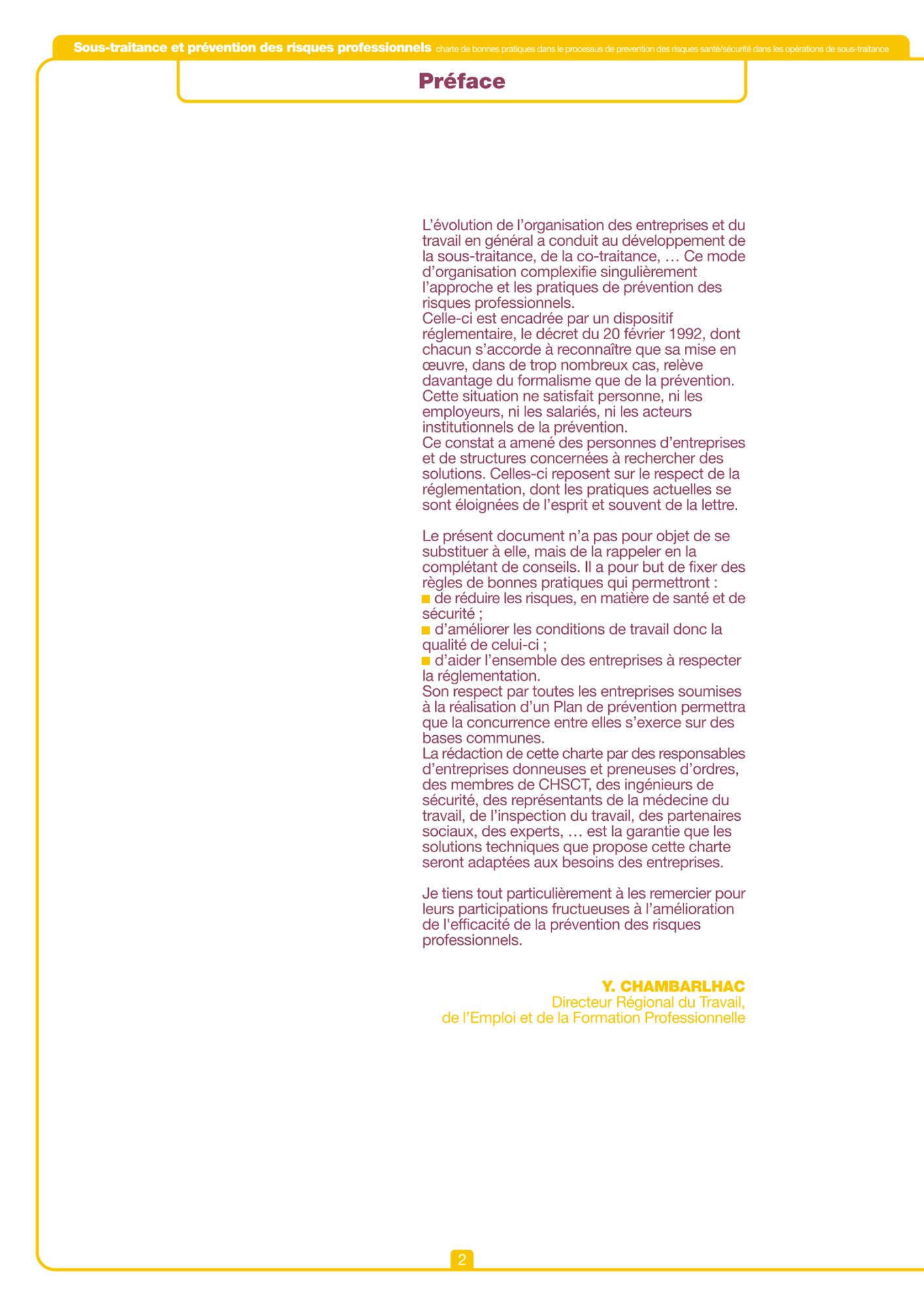 - Charte de bonnes pratiques dans le processus de prévention des risques santé/sécurité au travail dans les opérations de sous-traitance