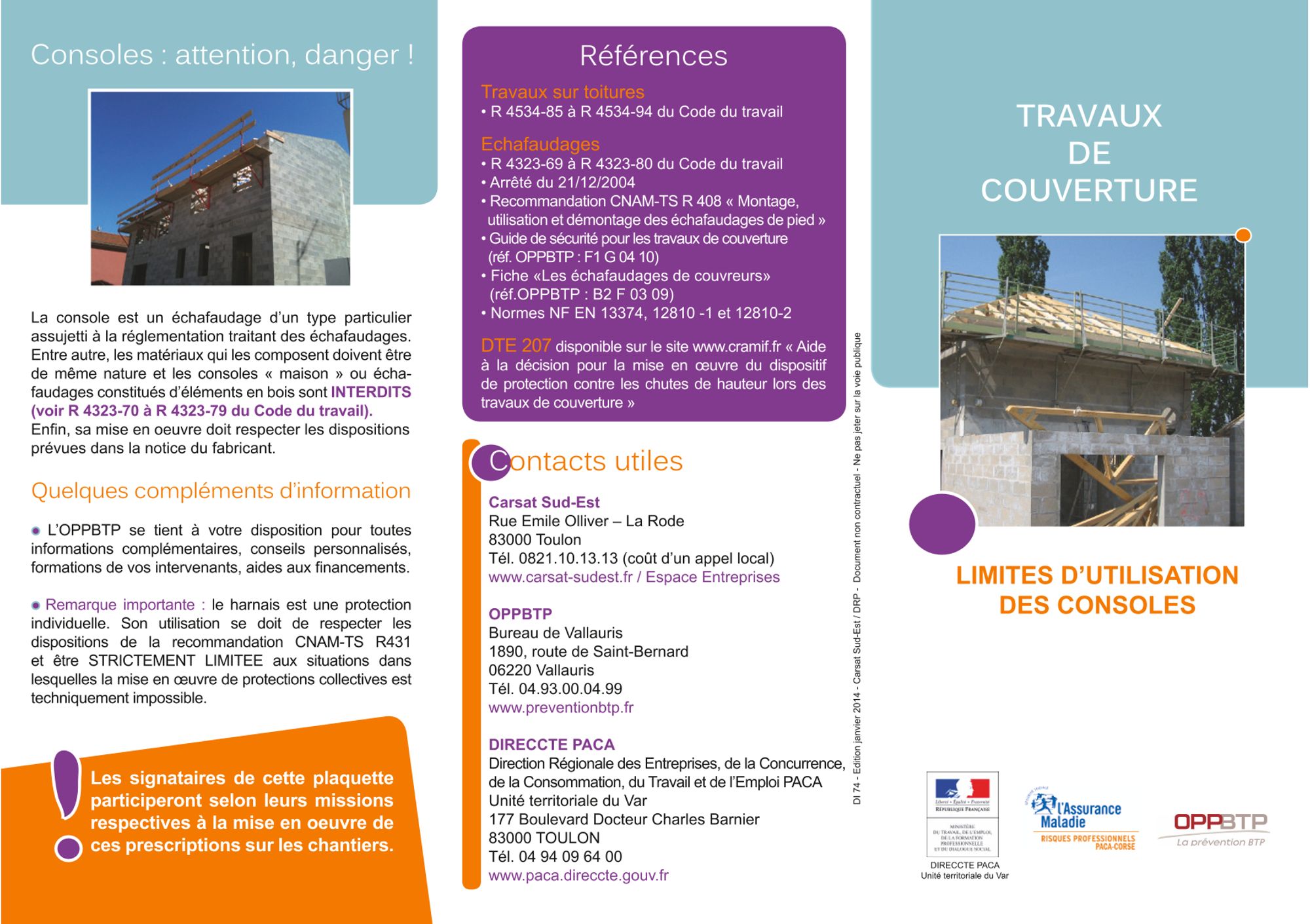 Travaux de couverture - Limites d'utilisation des consoles Travaux de couverture - Limites d'utilisation des consoles (374.9 Ko)