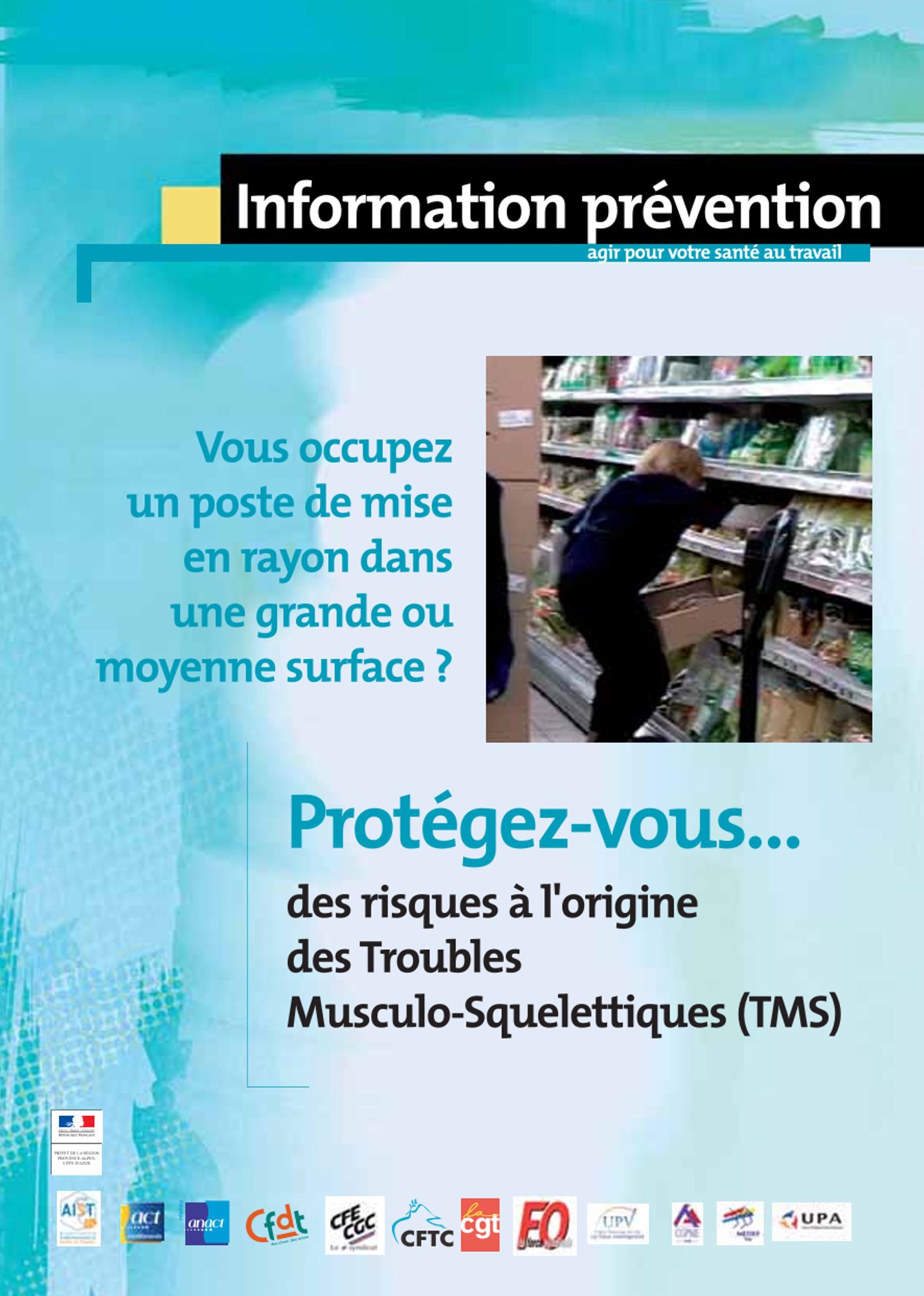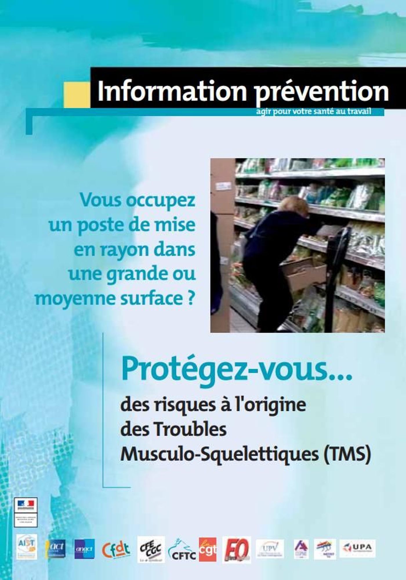 Vous occupez un poste de mise en rayon dans une grande ou moyenne surface ? Protégez-vous... des risques à l'origine des Troubles Musculo-Squelettiques (TMS). (Novembre 2010) Vous occupez un poste de mise en rayon dans une grande ou moyenne surface ? (622.3 Ko)
