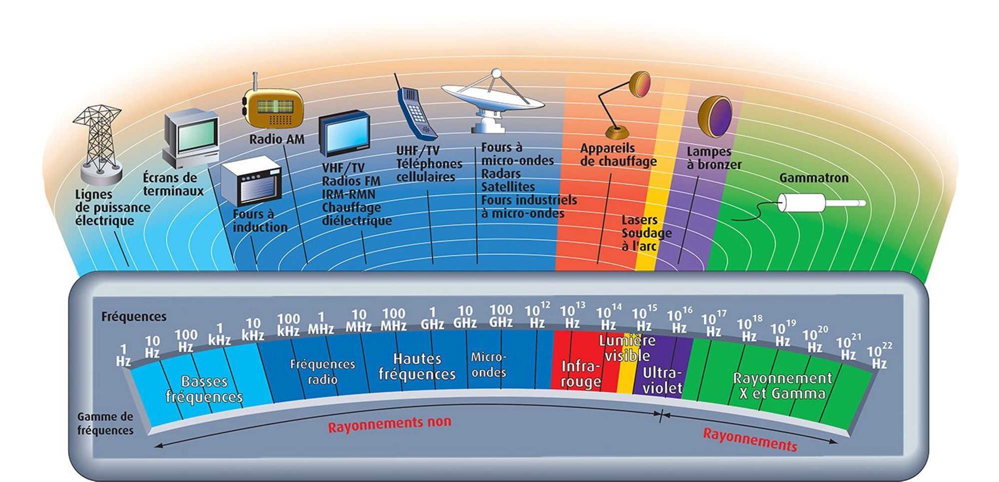 Les champs électromagnétiques (CEM) font partie des rayonnements non-ionisants (RNI), apparaissent dès lors que des charges électriques sont en mouvement. Un champ résulte de la combinaison de 2 ondes (l’une électrique, l’autre magnétique) qui se propagent à la vitesse de la lumière.