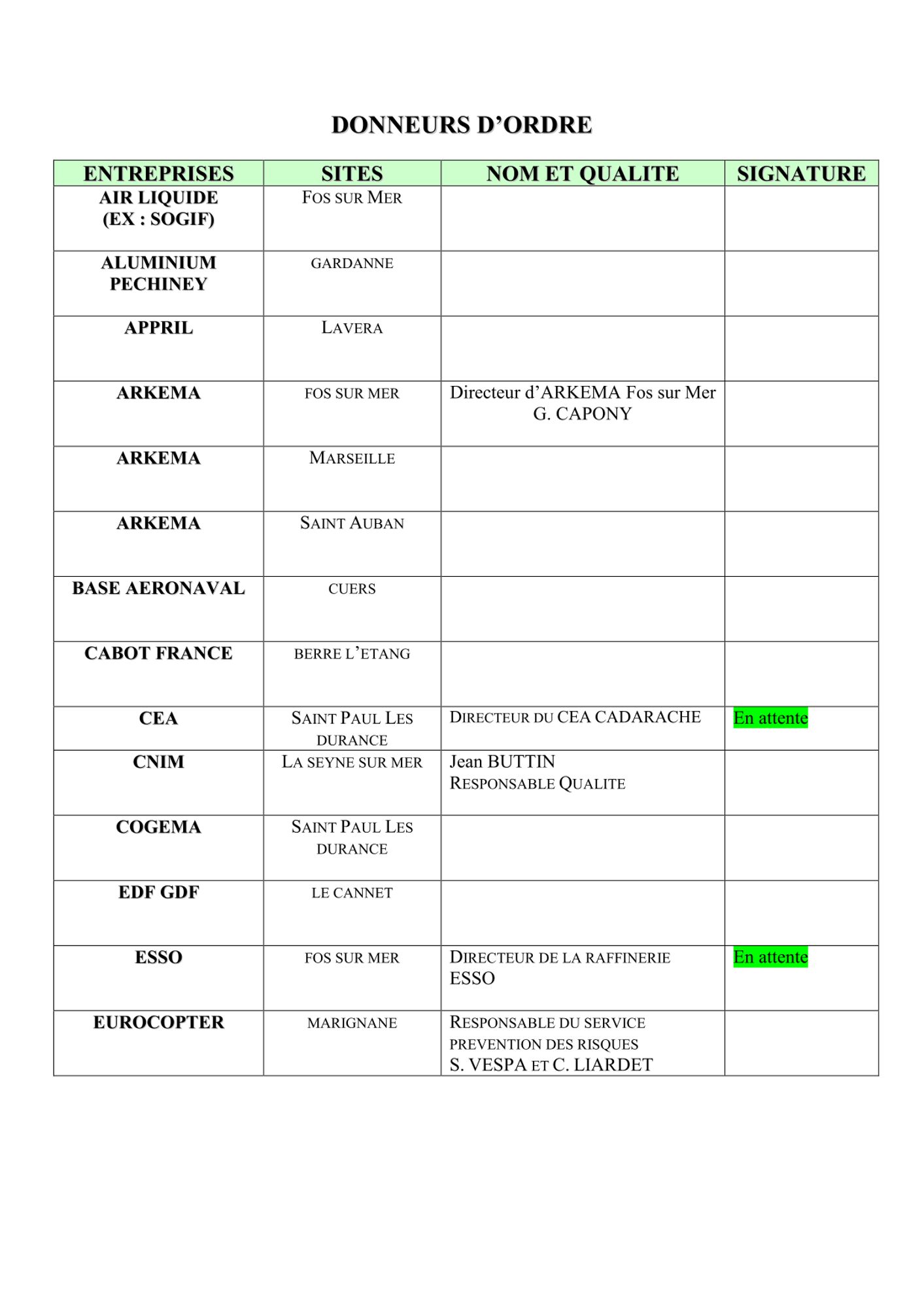- Signature de la charte.