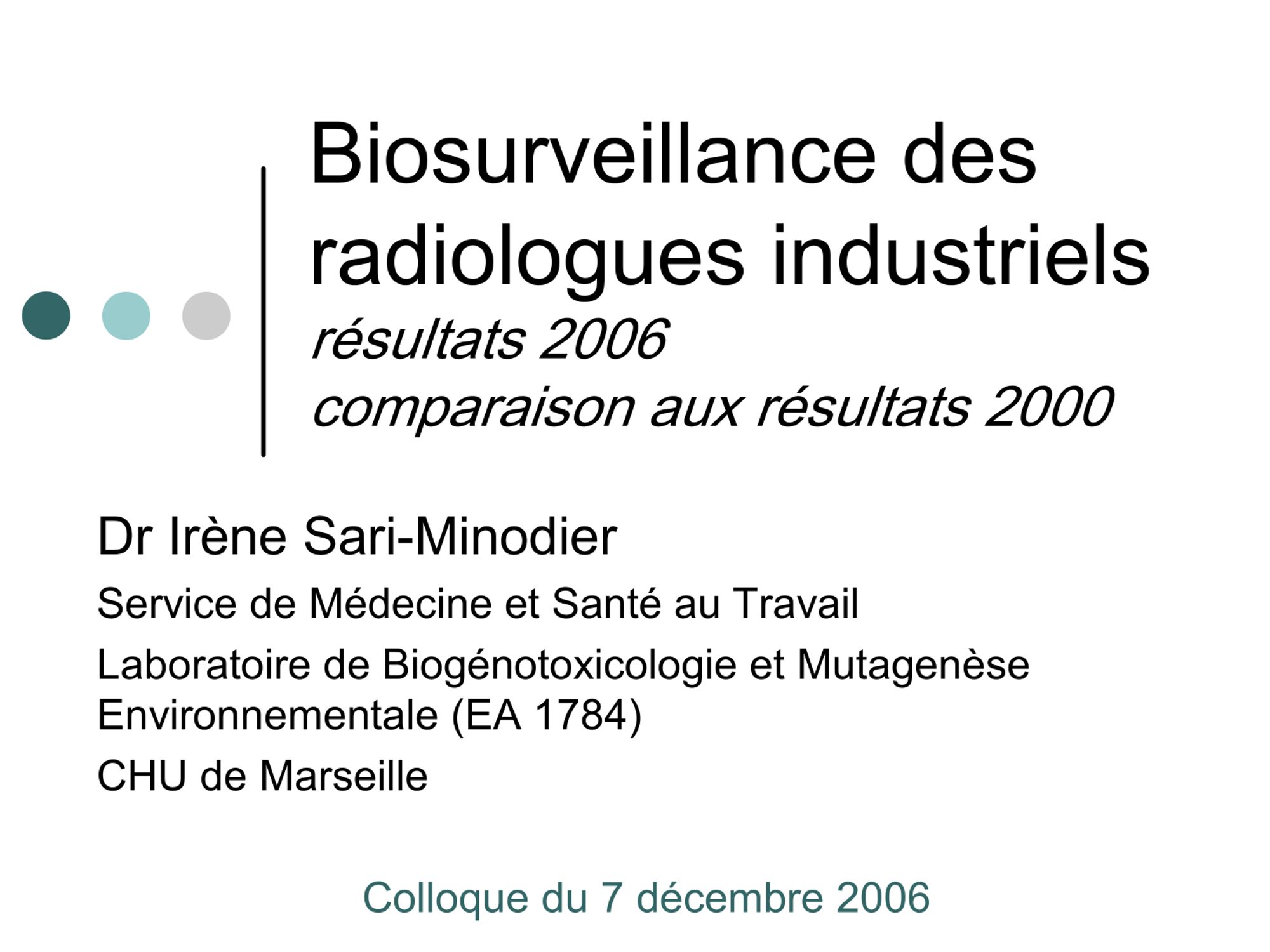 Colloque du 07 décembre 2006 sur la radiographie industrielle