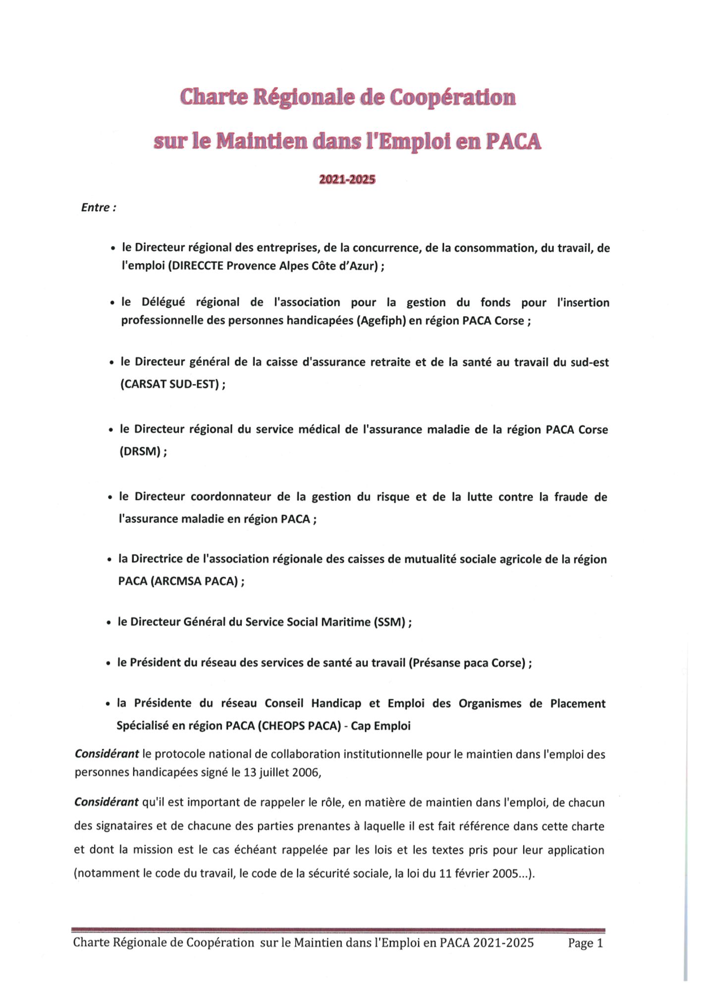 Archive - Charte Régionale de Coopération sur le Maintien Dans l'Emploi (MDE) 2021-2025