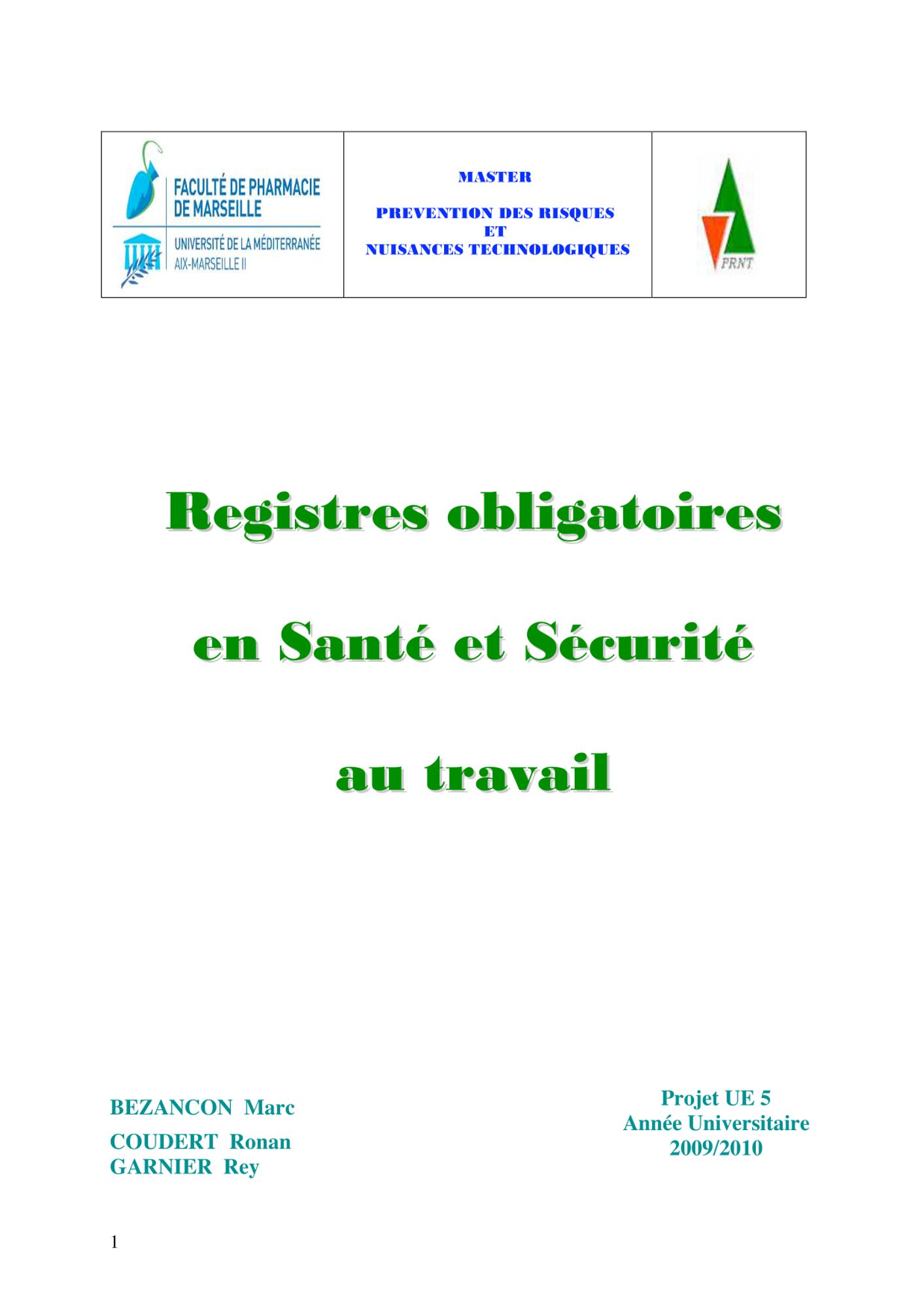 - Registre de vaccination : vaccination recommandée voire exigée pour certaines activités à risques.
