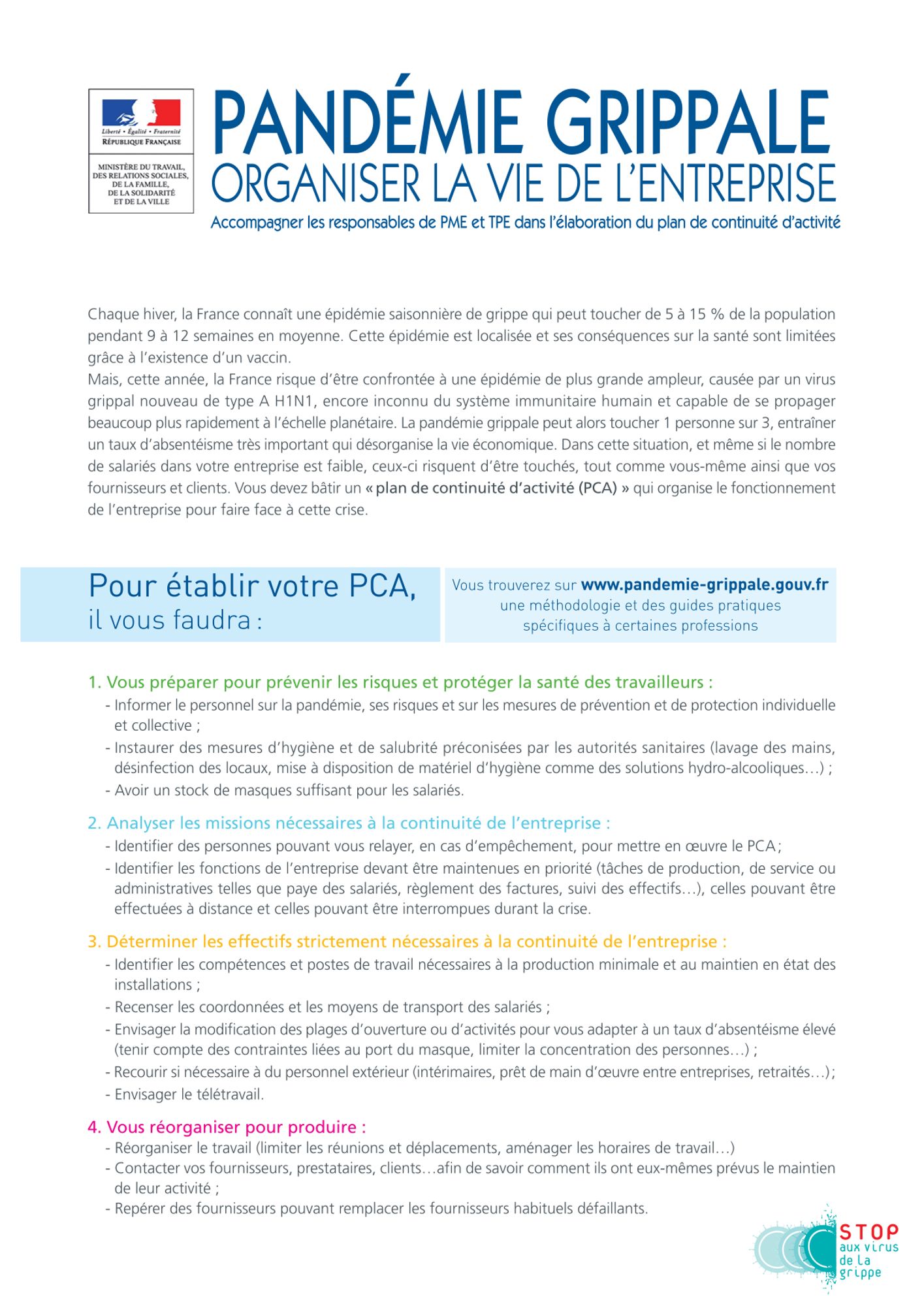 Pandémie grippale : organiser la vie de l'entreprise