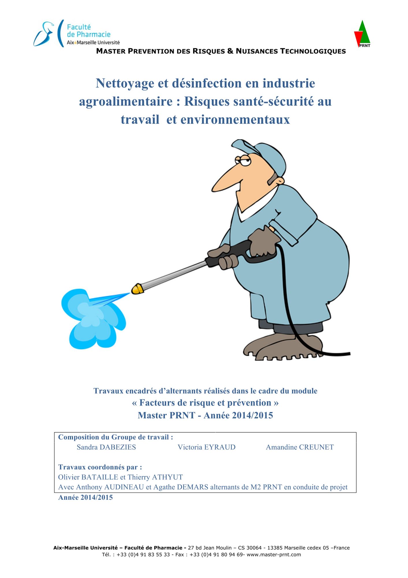 Nettoyage et désinfection en industrie agroalimentaire : risques santé sécurité au travail et environnementaux