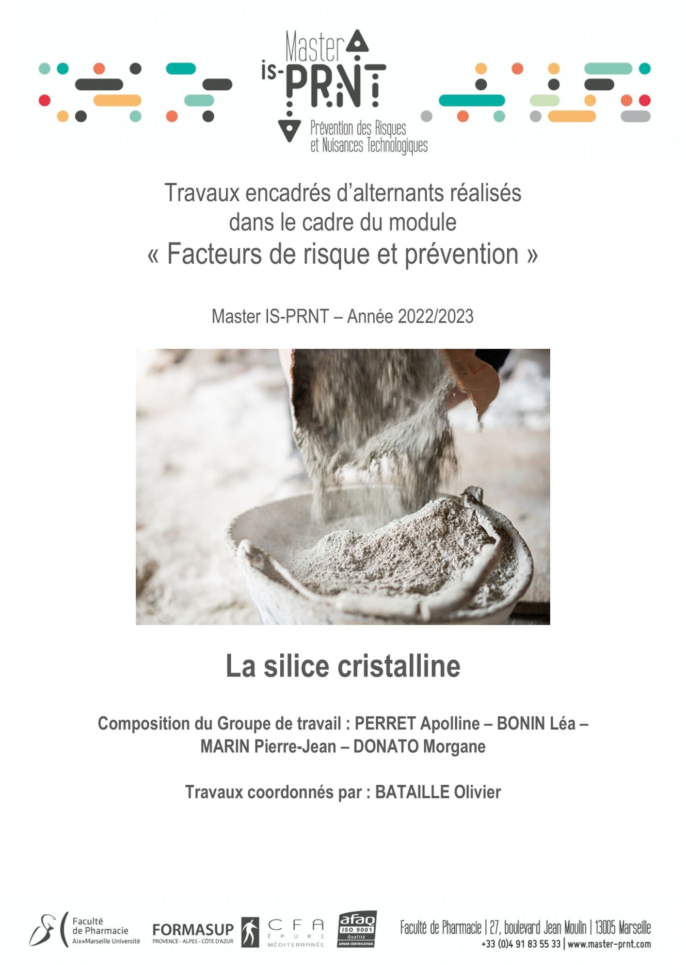 Ce dossier a pour objectif de présenter un outil permettant aux PME, PMI et TPE travaillant au contact de la silice, d’organiser leurs activités afin que leurs opérateurs soient dans des conditions de travail et de sécurités optimales. Il vise à informer les chefs d’entreprise et les personnels en charge de la sécurité à appréhender le risque lié à la silice et à comprendre, connaitre et appliquer la réglementation française en vigueur.