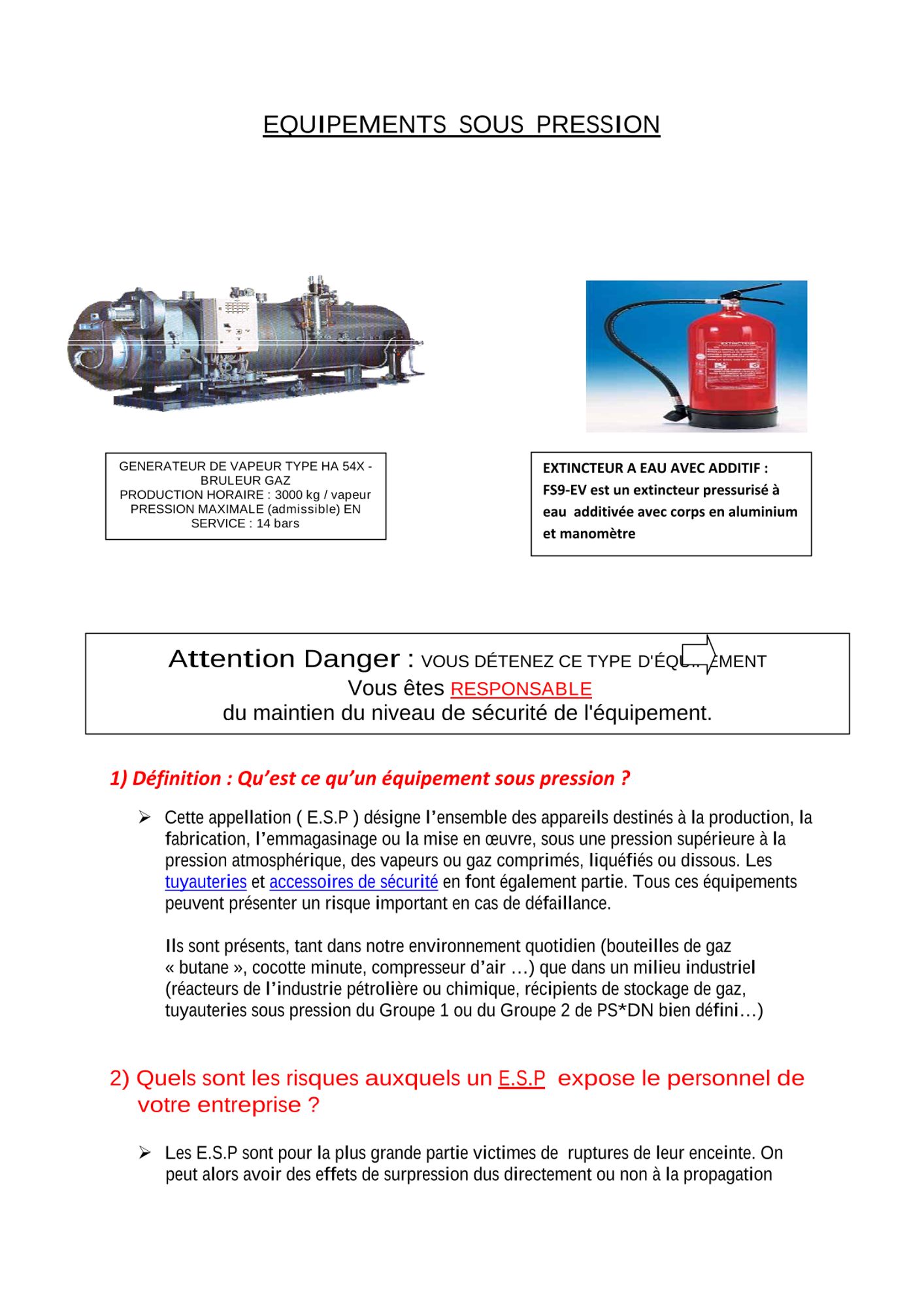 Equipements sous pression
