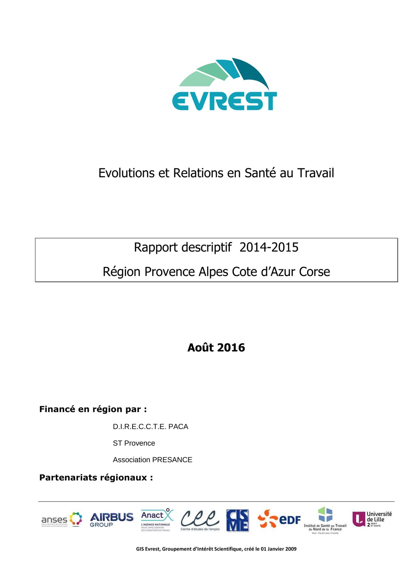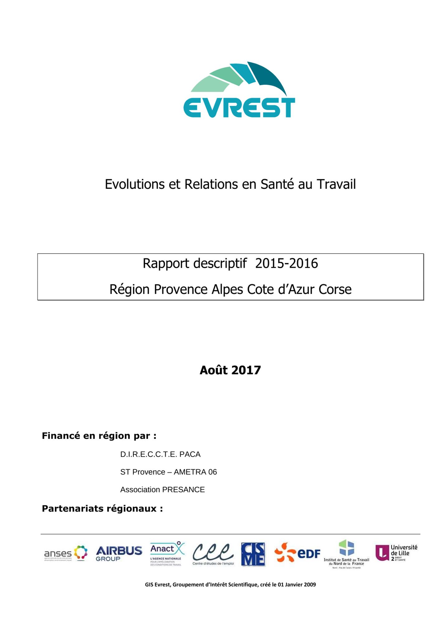 EVREST PACA Les lettres EVREST Consulter les documents Rapport EVREST 2017-2018 Rapport 2015-2016 (1.2 Mo) Rapport 2014-2015 (1.5 Mo) Rapport 2013-2014 (1.8 Mo)