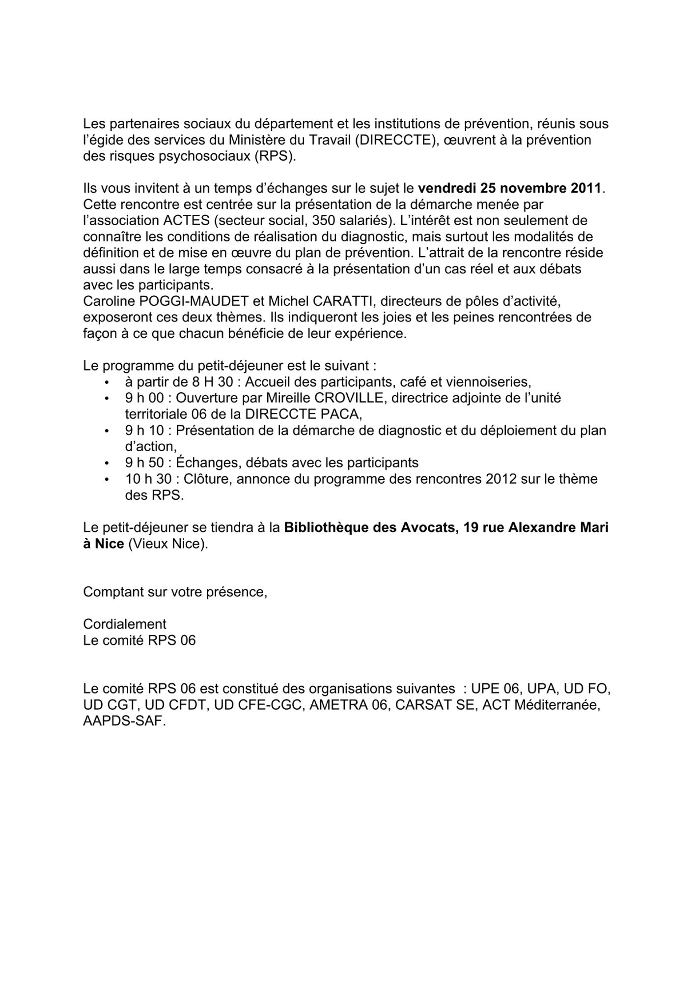 Du diagnostic au plan d'action, quelle démarche RPS mise en place ? Focus sur Réussites et Difficultés 25 novembre 2011 Programme (48.3 Ko) Présentation de la démarche réalisée par l'association ACTES (secteur social, 350 salariés) (555.3 Ko)
