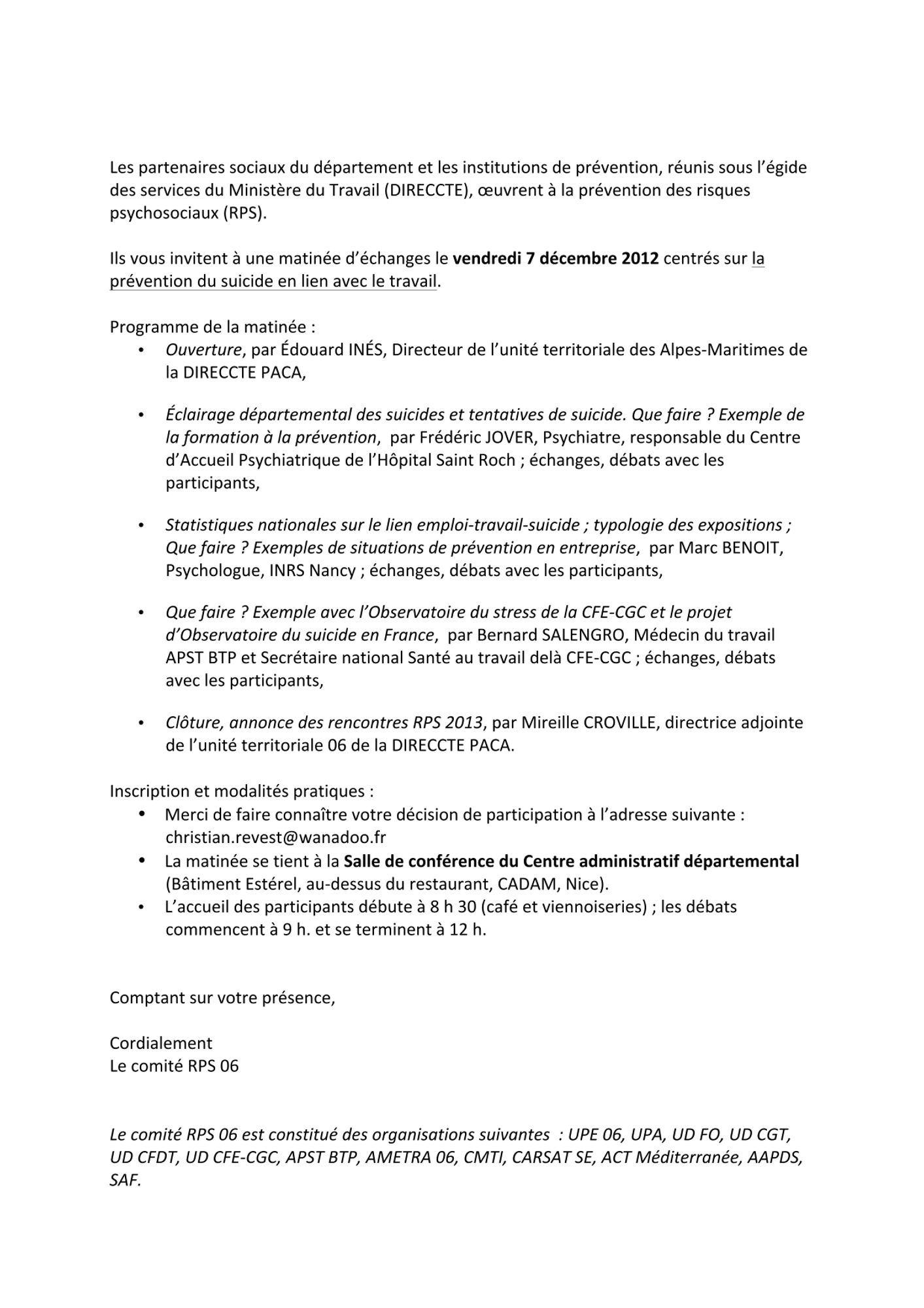Formation à la prévention des risques psychosociaux 22 mars 2013 Programme du 22/03/13 (64.8 Ko) Synthèse de l'étude de l'IRT portant sur : la mise en uvre des savoirs transmis lors des actions de formations des IRP sur les RPS (166.4 Ko)