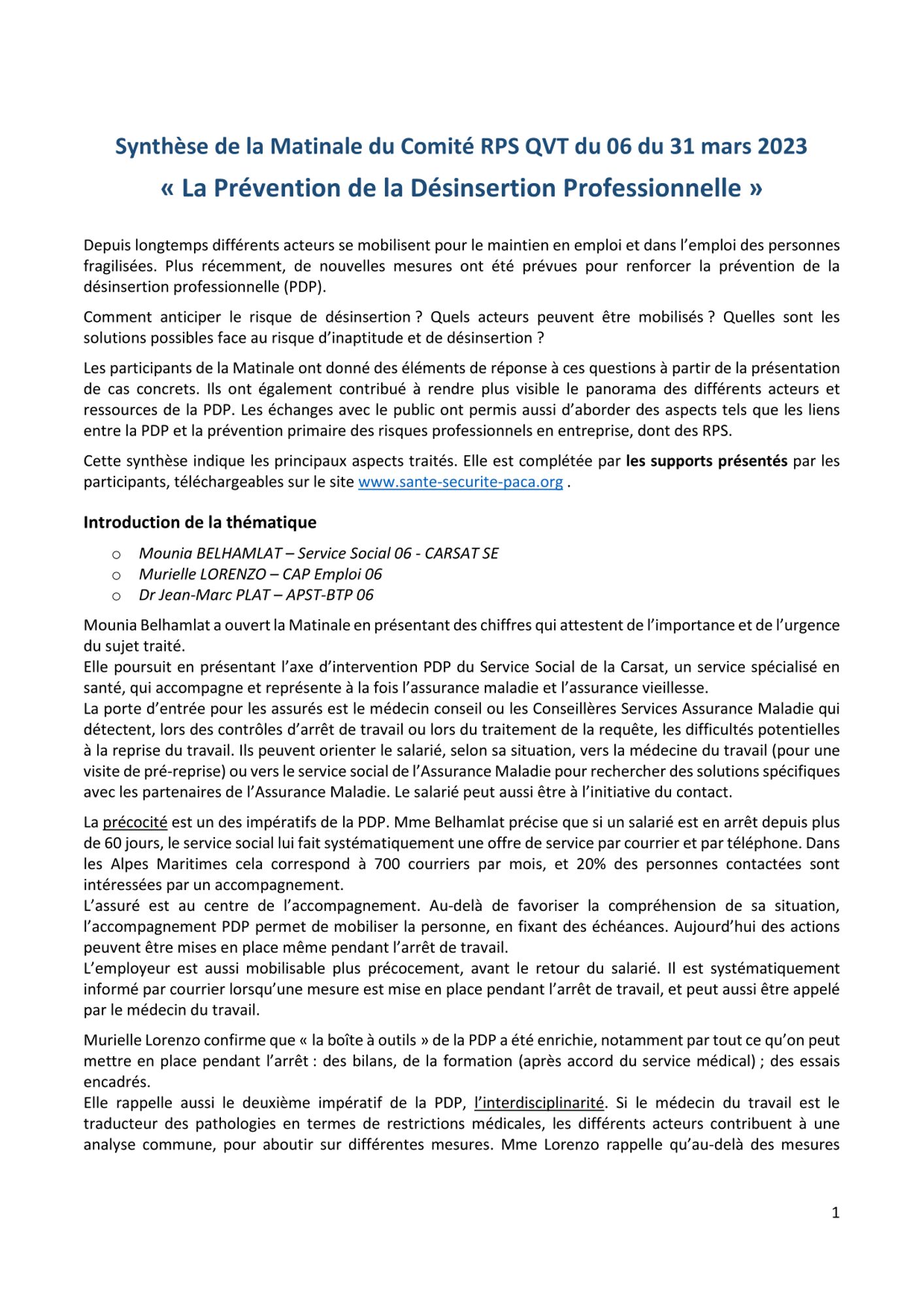 La Prévention de la Désinsertion Professionnelle (PDP) ne se limite pas à la gestion des inaptitudes. Elle peut constituer un outil de préservation de la qualité de vie au travail et de conservation et gestion des compétences.