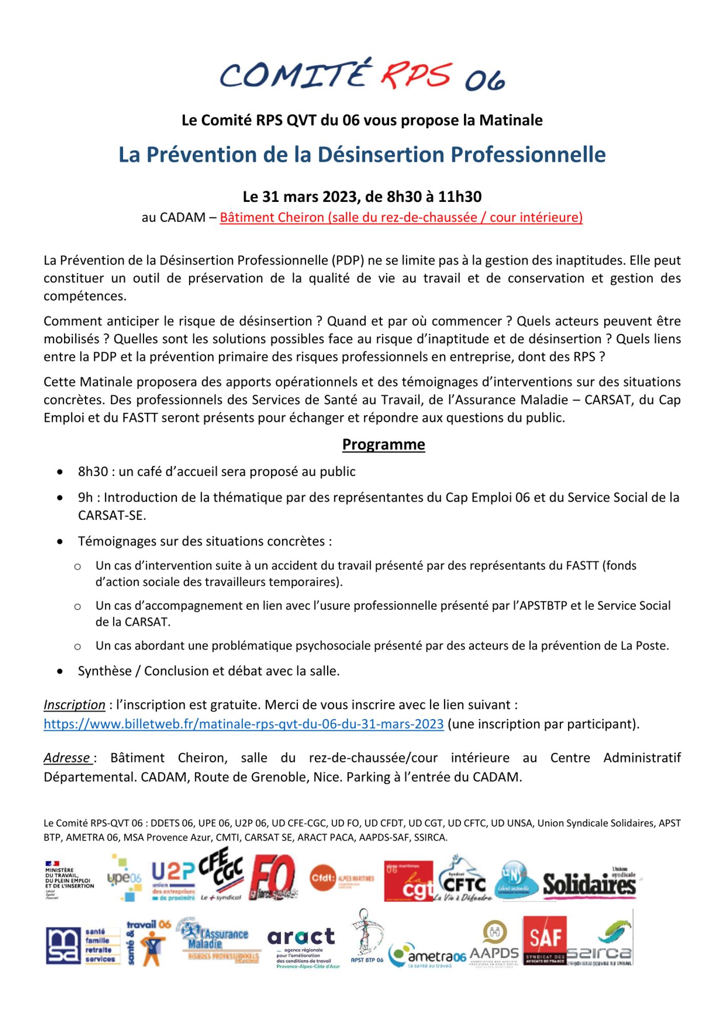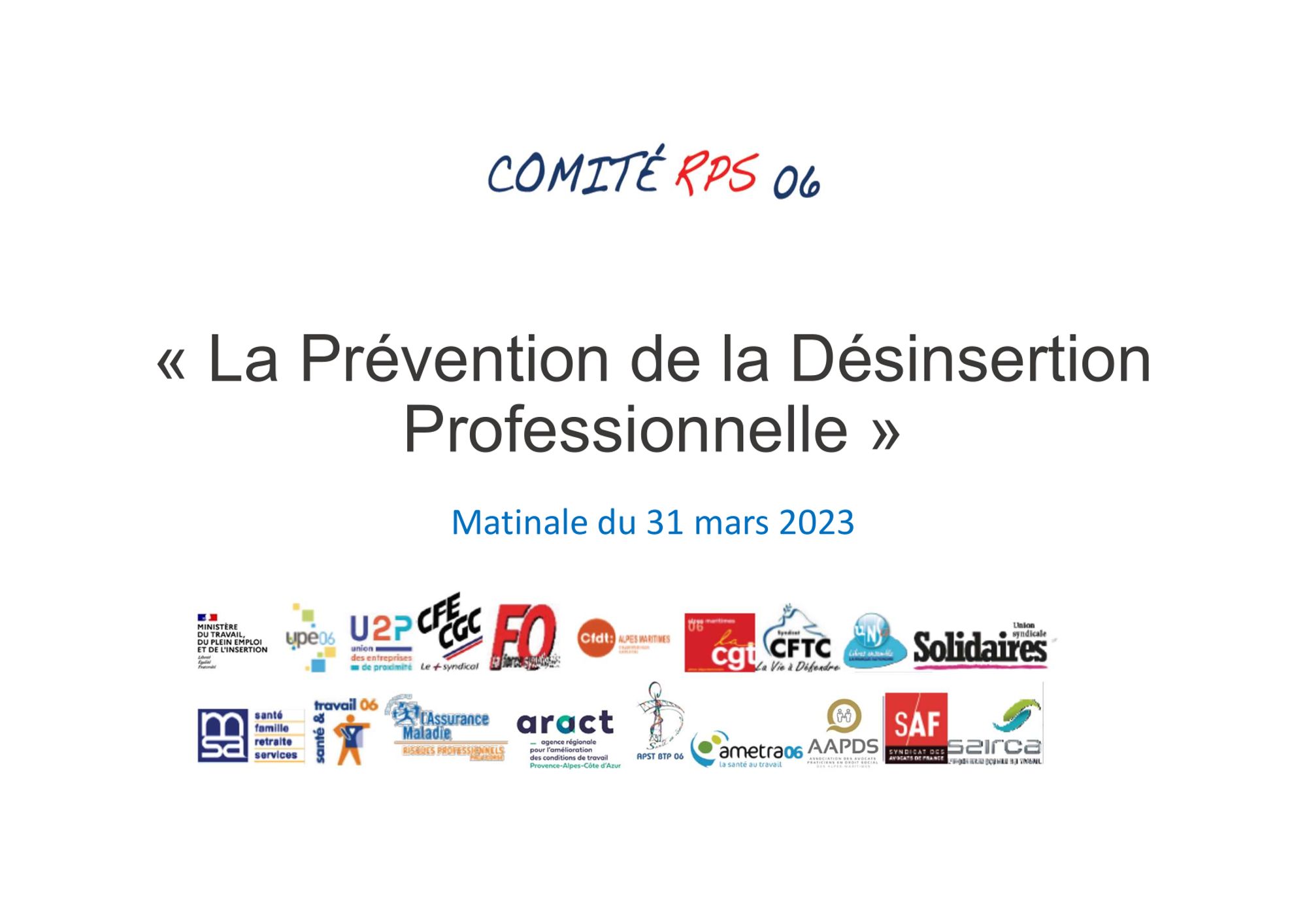 Comment anticiper le risque de désinsertion ? Quand et par où commencer ? Quels acteurs peuvent être mobilisés ? Quelles sont les solutions possibles face au risque d’inaptitude et de désinsertion ? Quels liens entre la PDP et la prévention primaire des risques professionnels en entreprise, dont des RPS ?