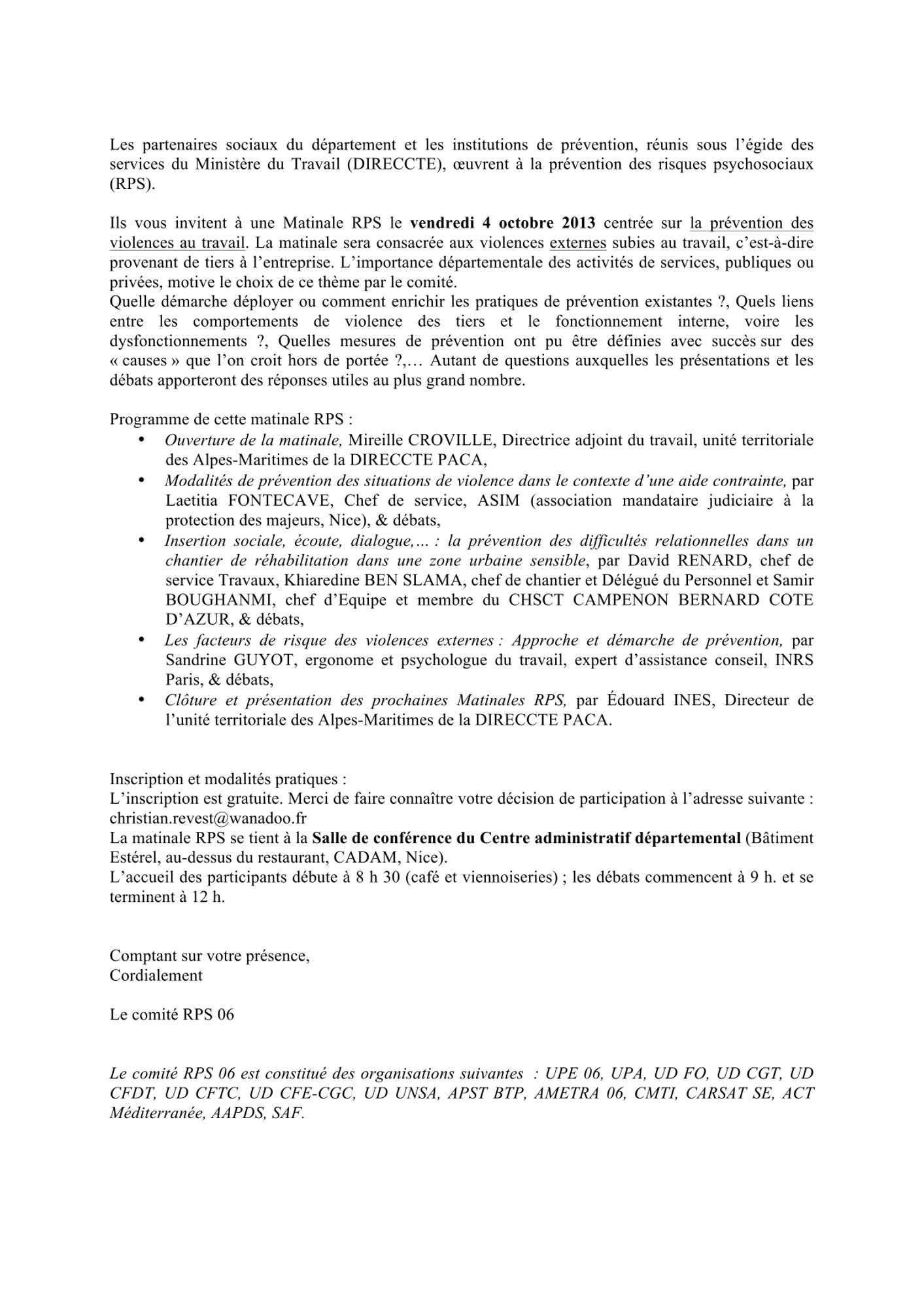 Historique des Matinales RPS/QVT des Alpes-Maritimes