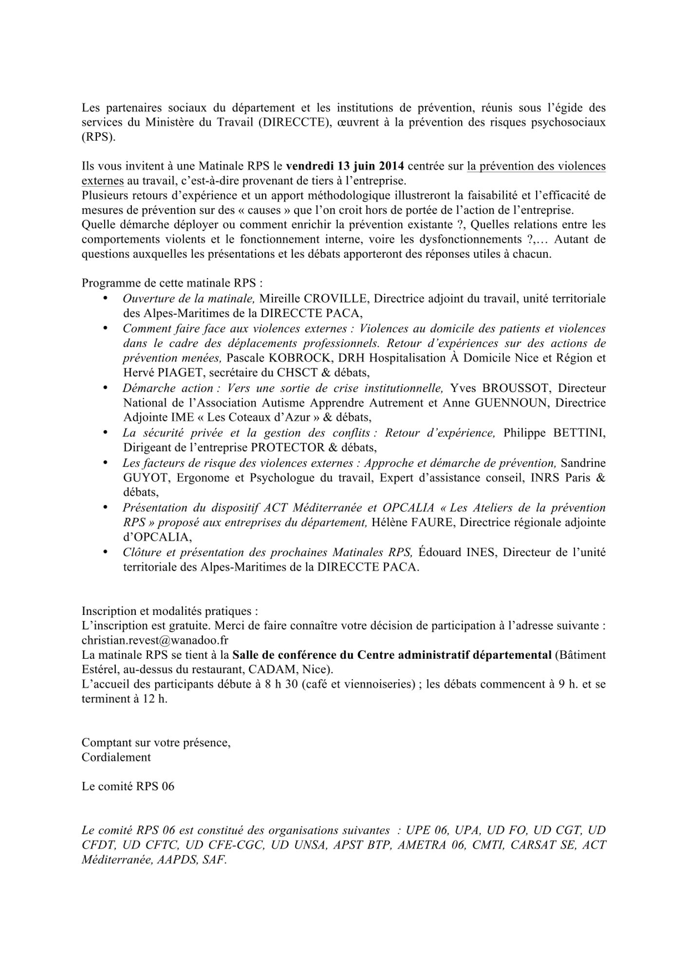 Historique des Matinales RPS/QVT des Alpes-Maritimes