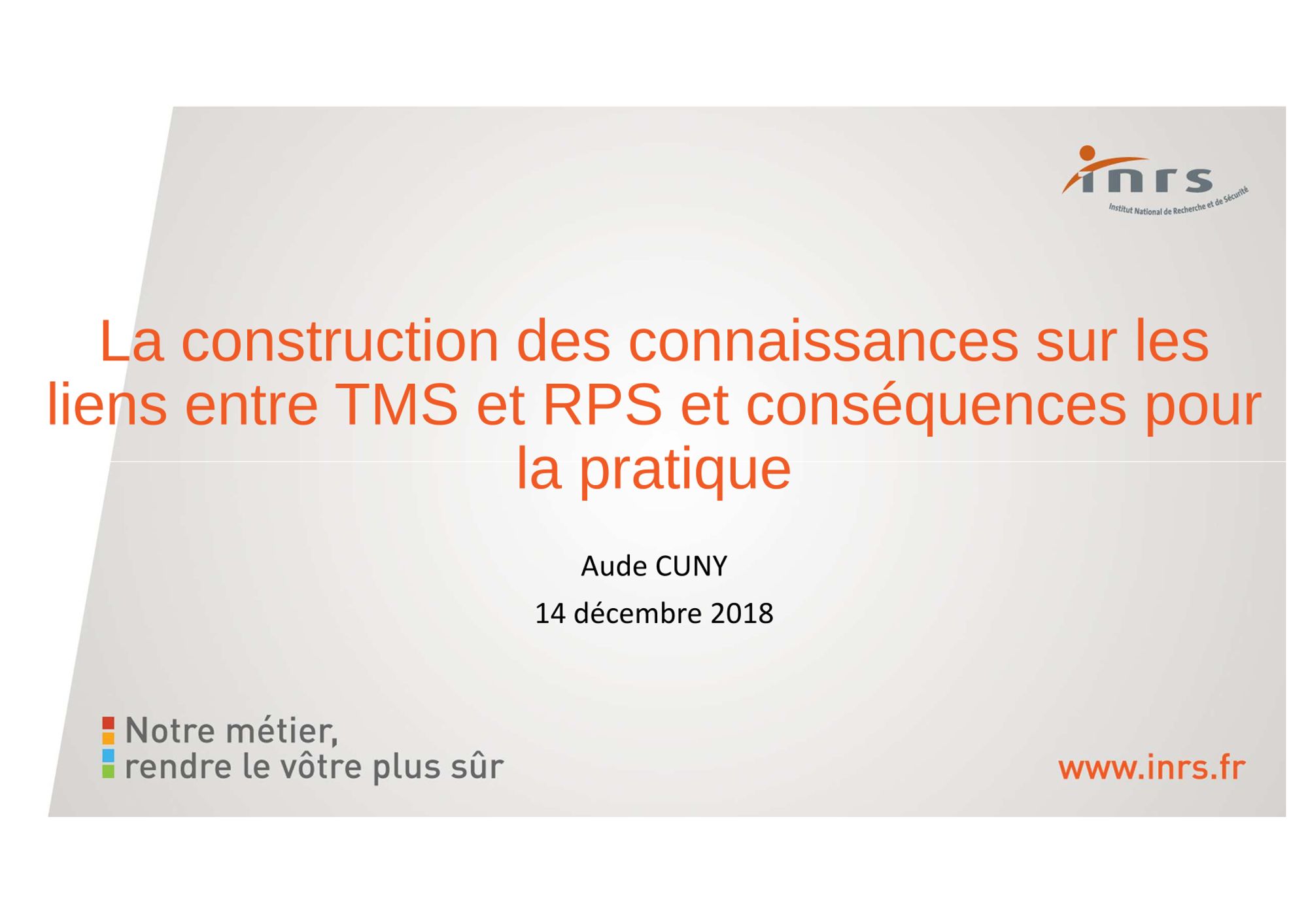TMS et RPS 14 décembre 2018 Invitation (221.4 Ko) Interroger les TMS sur un poste d'accueil dans un EHPAD. Levier de prévention de RPS ? (2.5 Mo) La construction des connaissances sur les liens entre TMS et RPS et conséquences pour la pratique (2.1 Mo) La gestion du stress par le bien-être au travail (1.0 Mo)