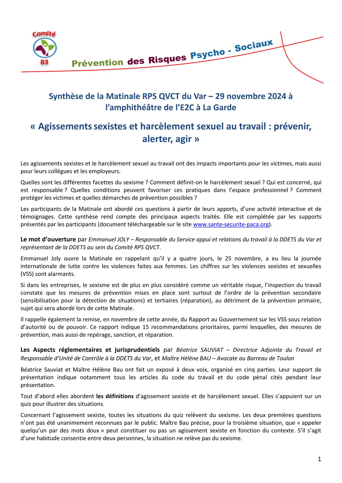 Agissements sexistes et harcèlement sexuel au travail : prévenir, alerter, agir