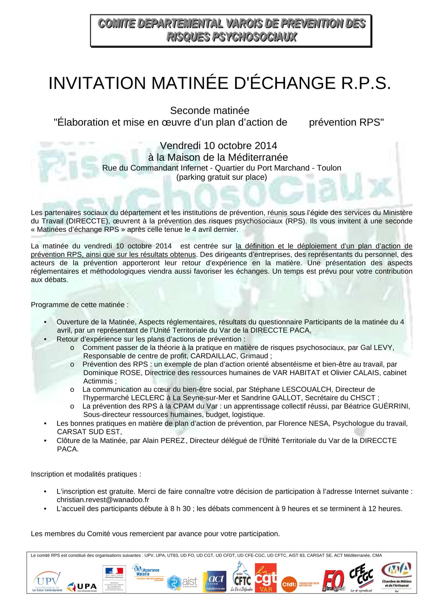 Historique des Matinales RPS/QVT des Alpes-Maritimes