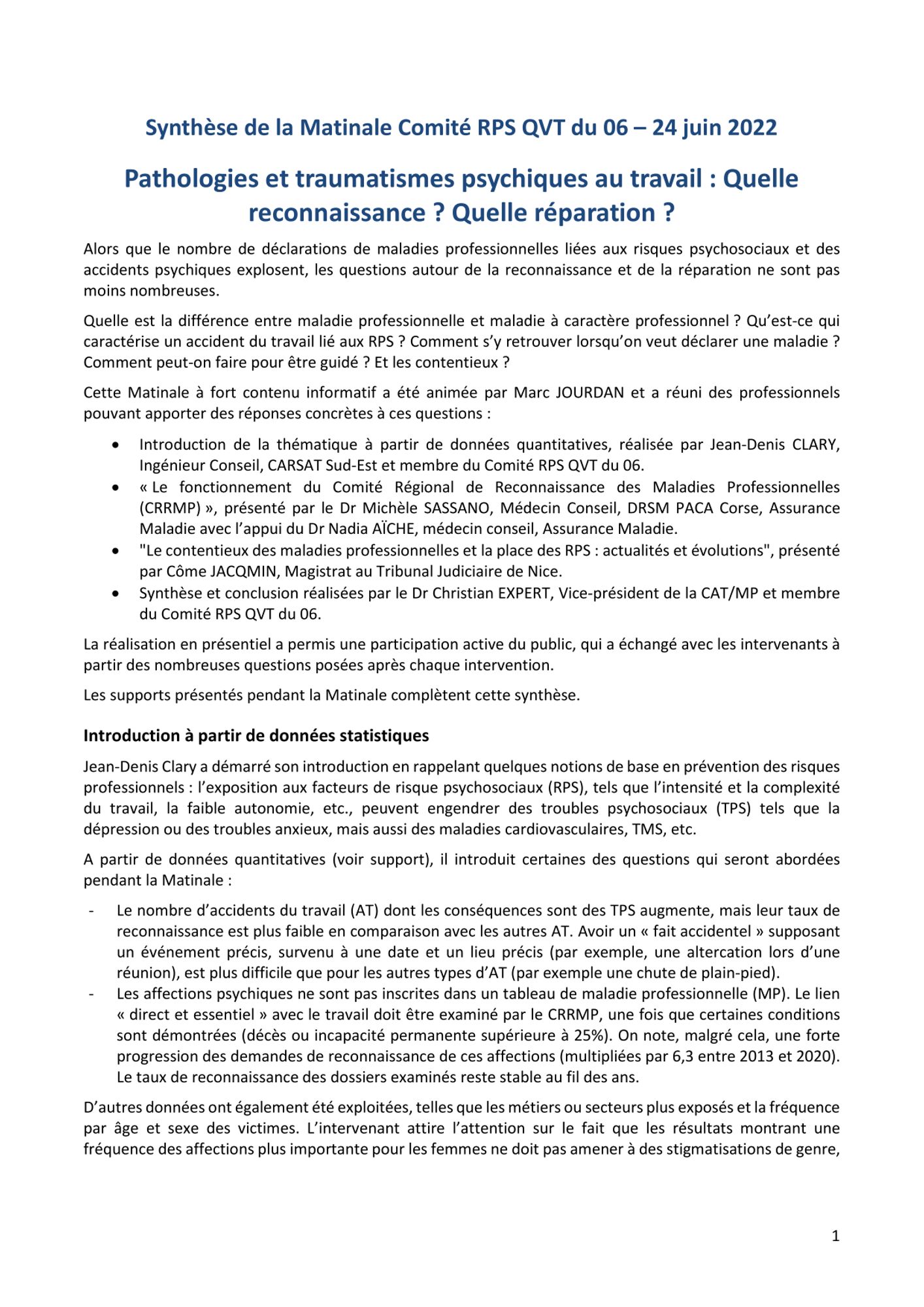 Quelle est la différence entre maladie professionnelle et maladie à caractère professionnel ? Qu’est-ce qui caractérise un accident du travail lié aux RPS ? Comment s’y retrouver lorsqu’on veut déclarer une maladie ? Comment peut-on faire pour être guidé ? Et les contentieux ?